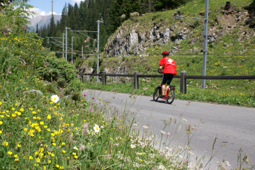 By scooter from Preda or Chants to Bergün. In summer you can ride the Albula Pass road from Preda to Bergün on a scooter. The Rhaetian Railway takes you to Preda in 15 minutes and then it's the 6 km back to Bergün. Fun for young and old!